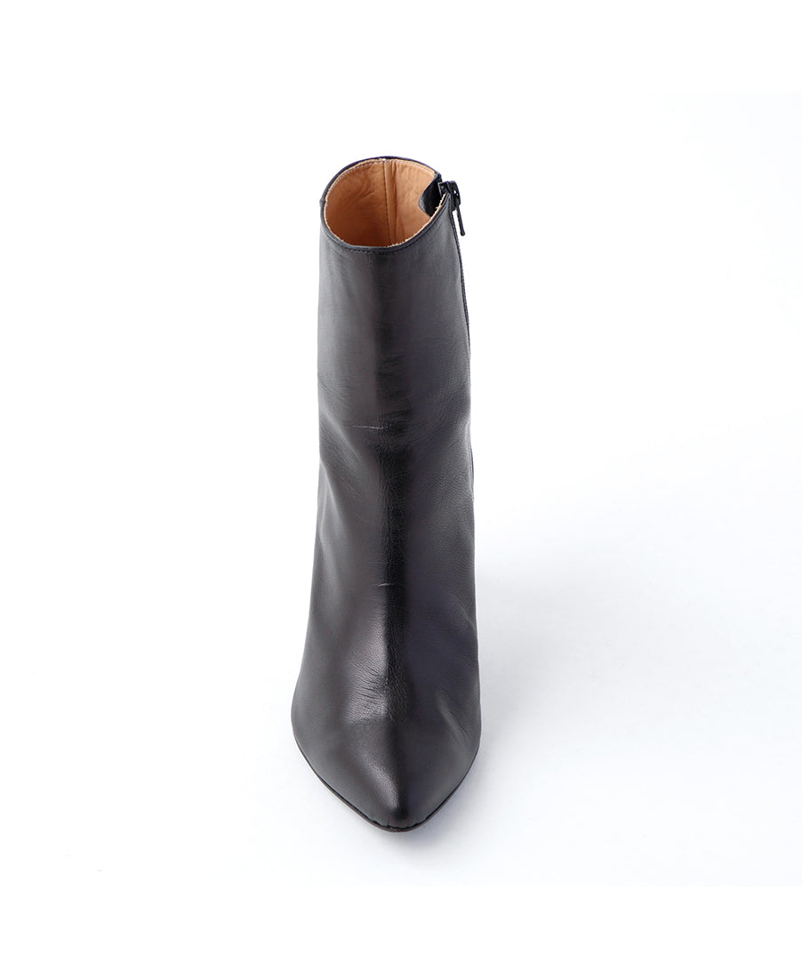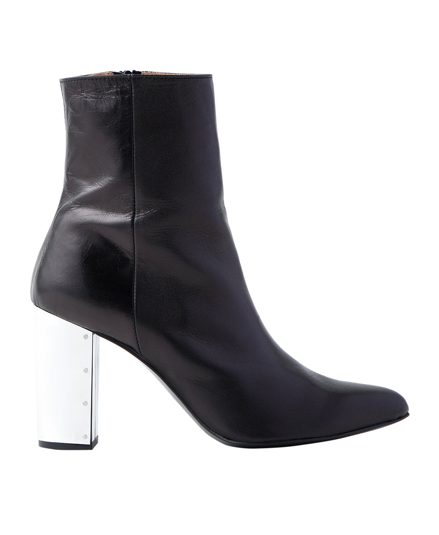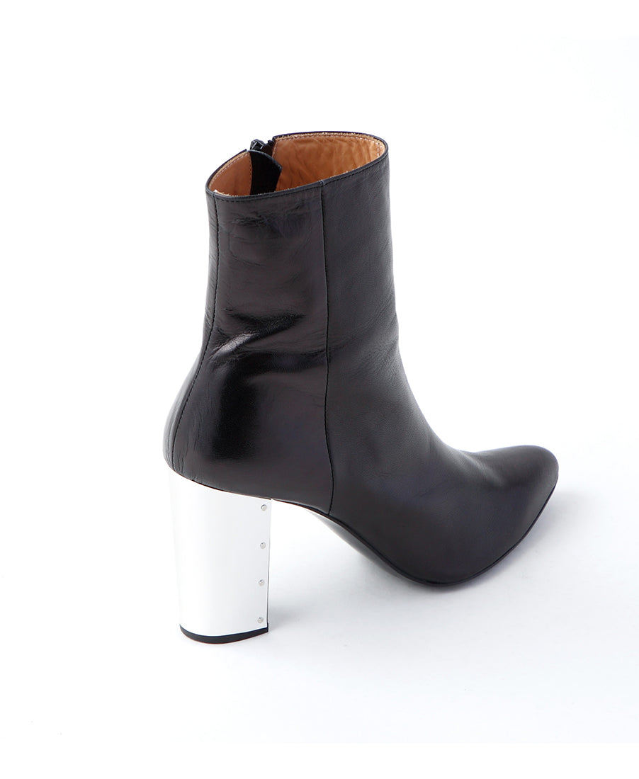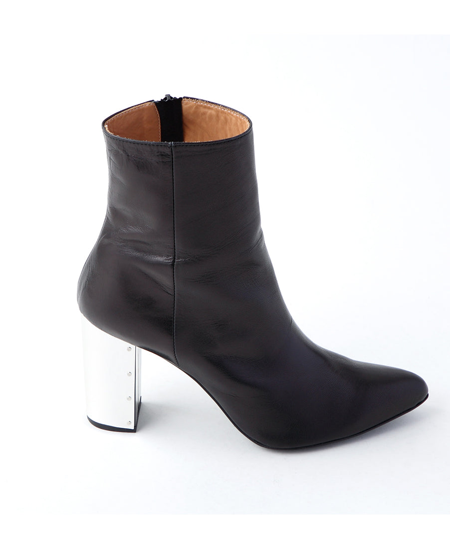 ヒール部分にメタルパーツを取り付けた定番ショートブーツ。