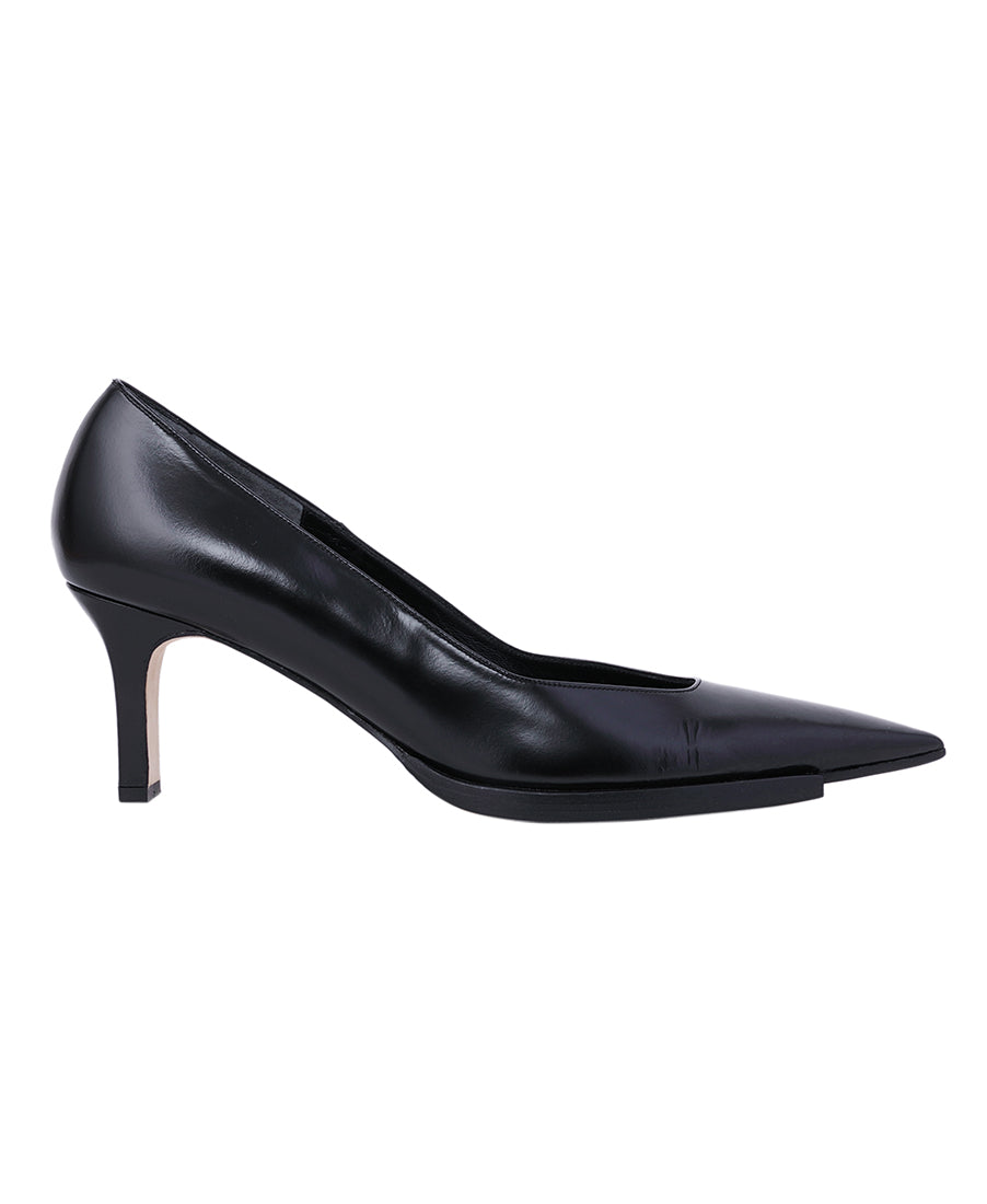 フロント部分をカットオフされたソールが特徴のポインテッドトゥパンプス。ヒール高 6.5cm。