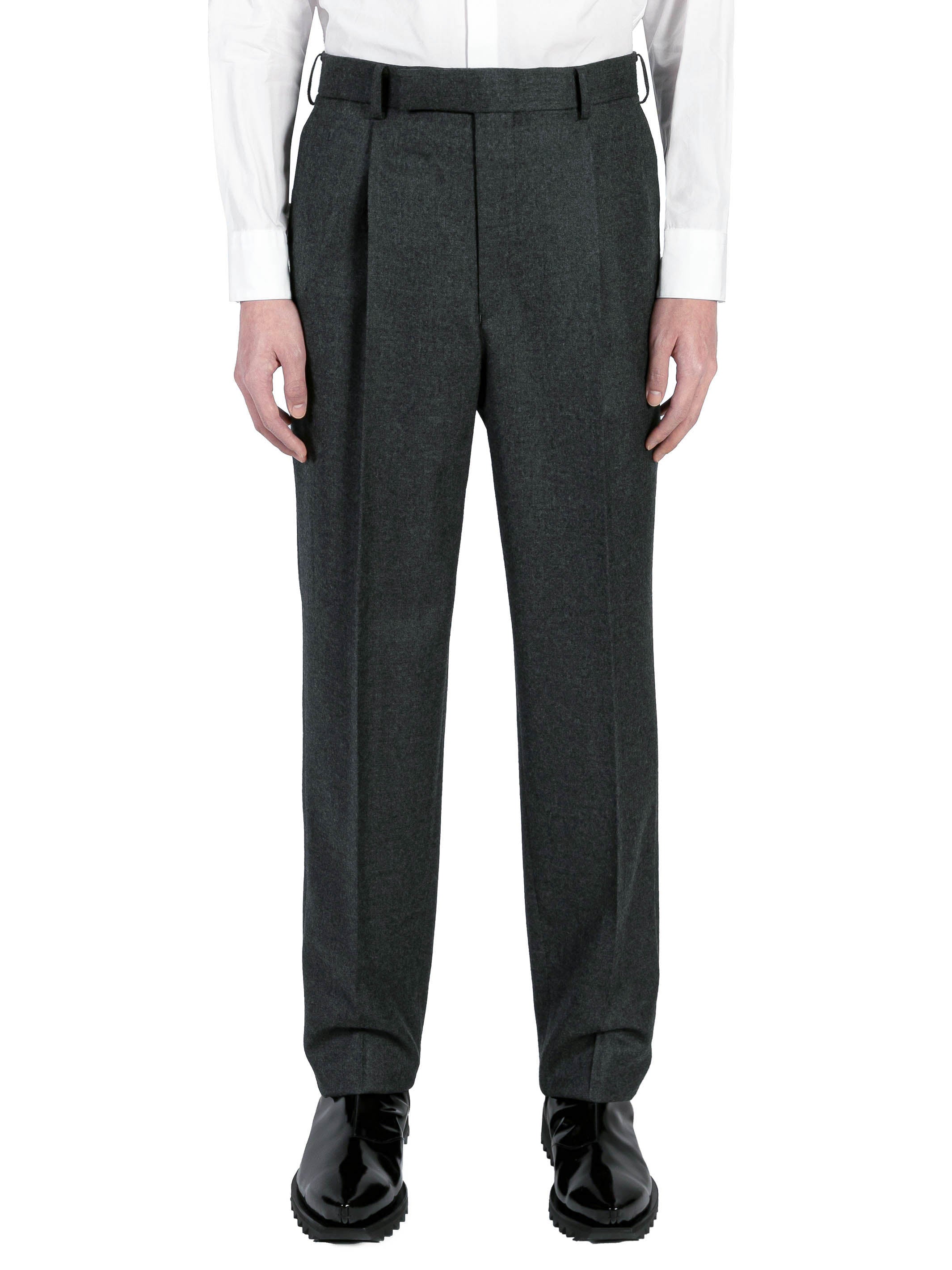 リラックス感のある太さのアウトプリーツテーパードトラウザーズ。
