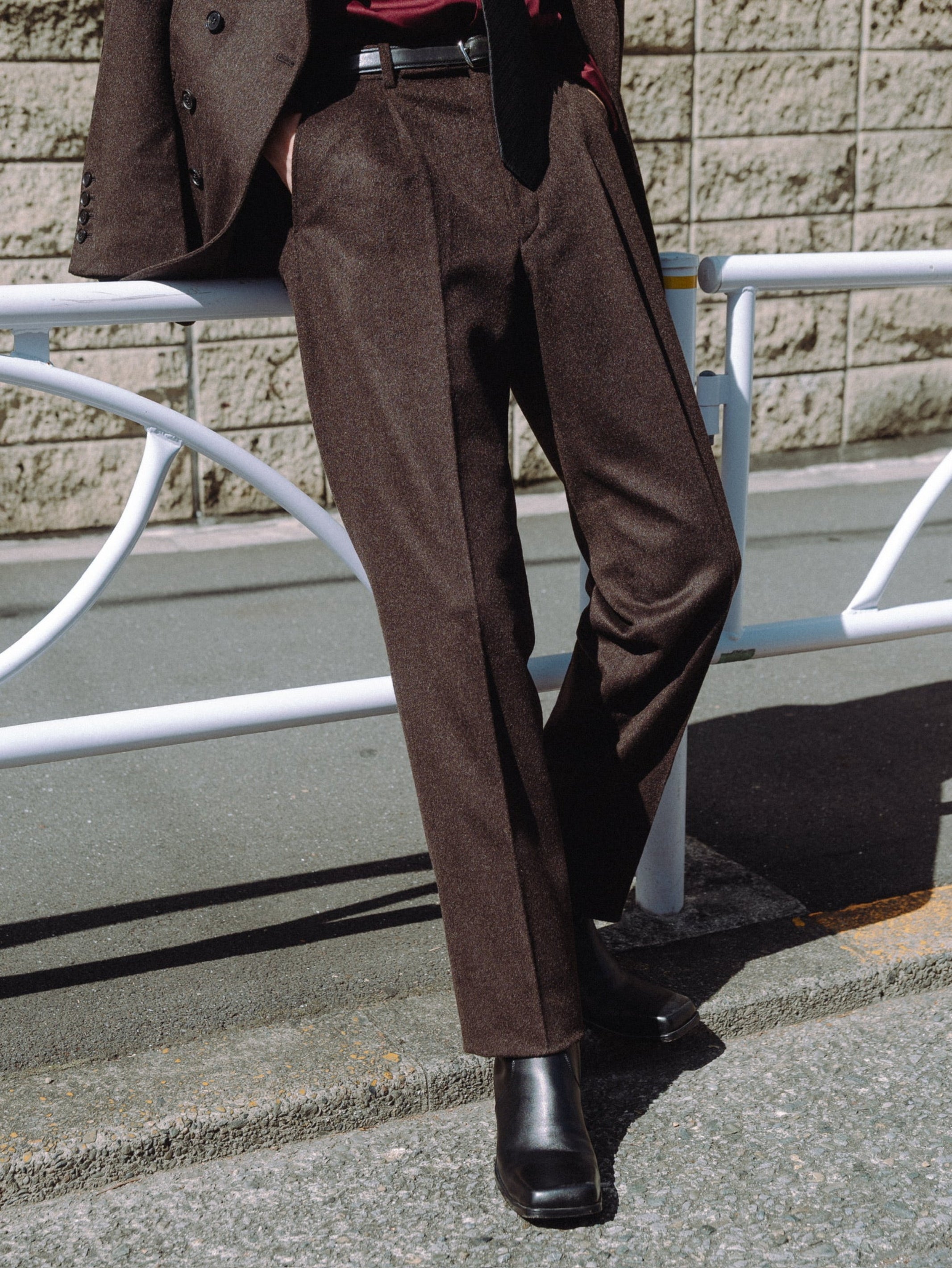 イタリア北部ビエラ地方に拠点を構える世界最古とも言われるテキスタイルメーカー、PIACENZA(ピアチェンツァ)のフラノ生地を使用。